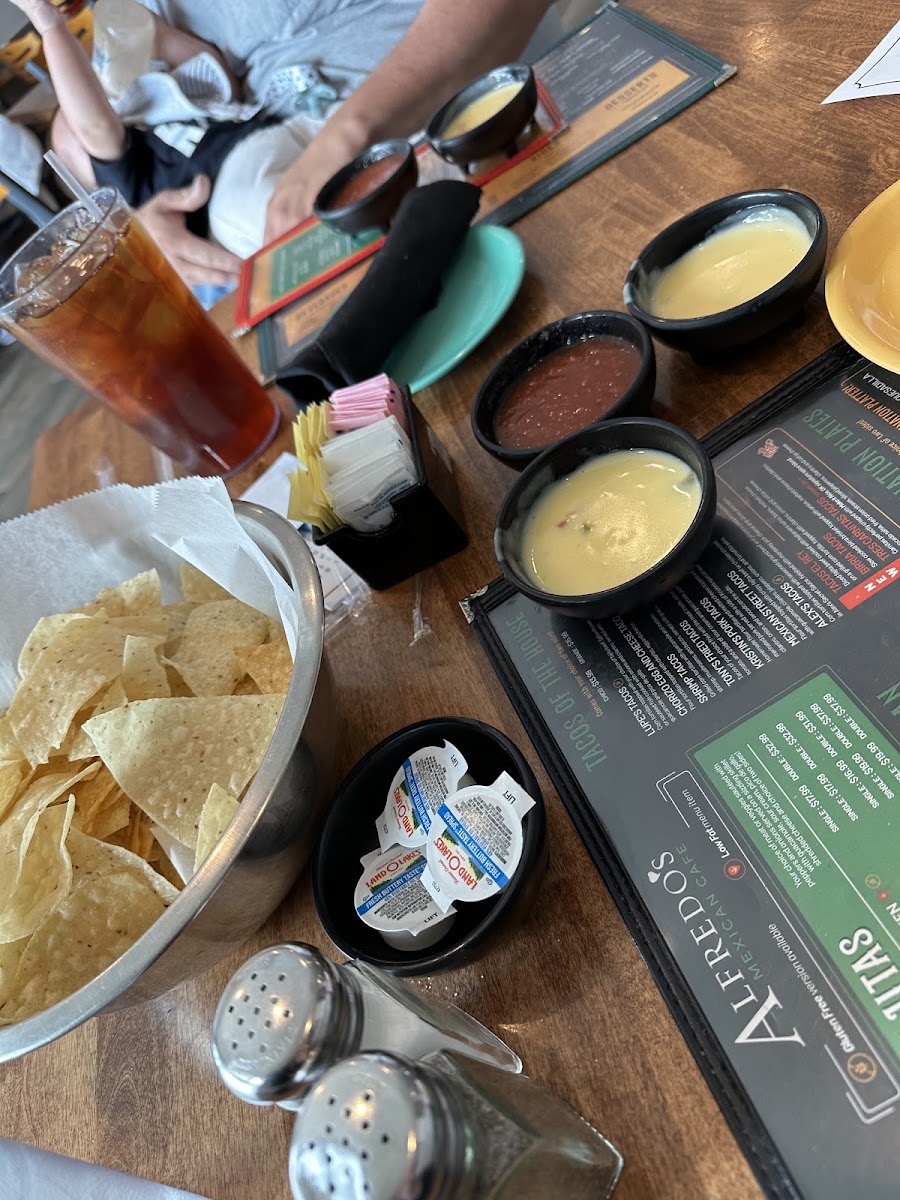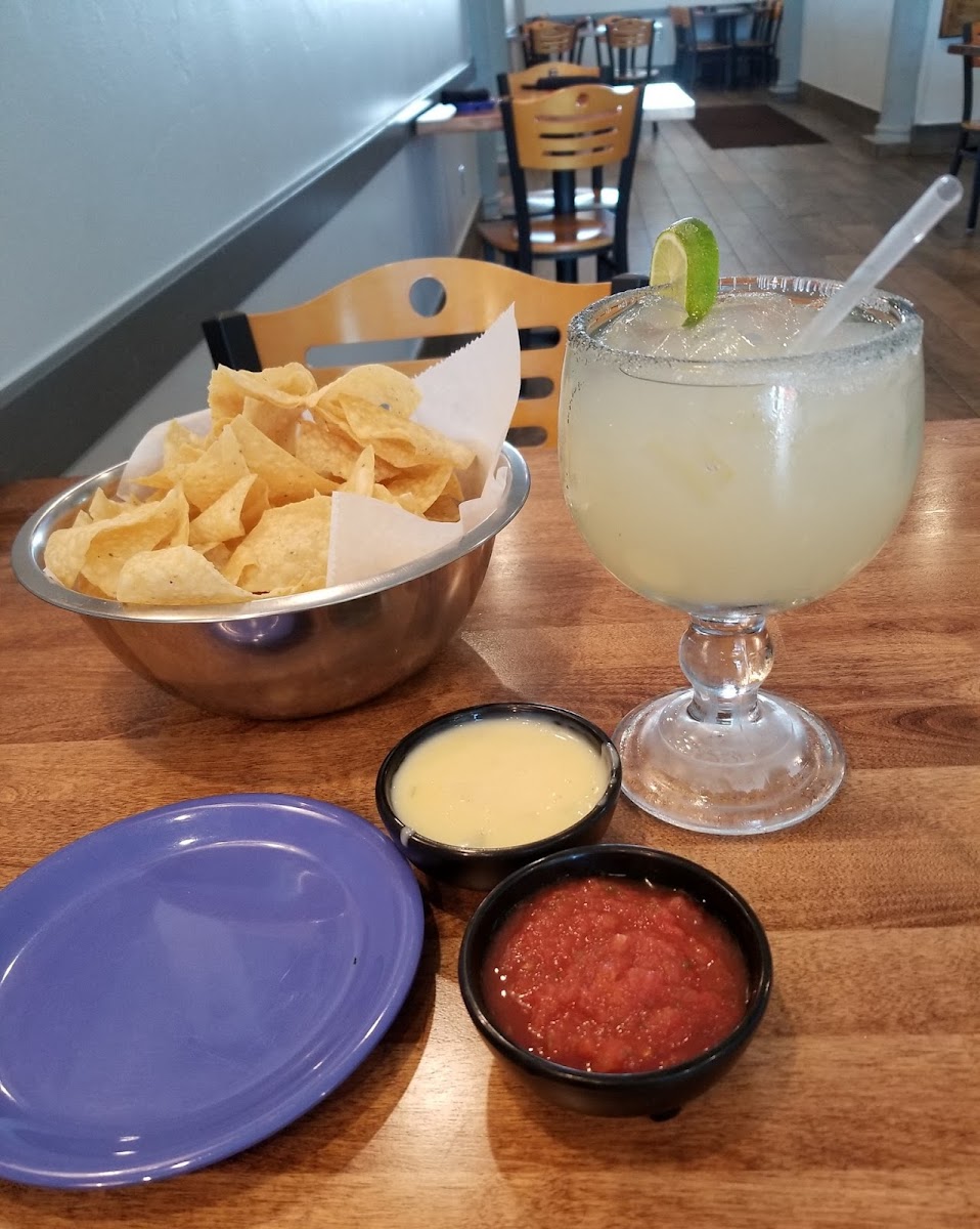 Noticed this place next to where I had an appointment, and we thought we'd check it out for lunch. Sooooo glad we did!! Now it was super busy for lunch, but the staff was able to handle it. The service was fast. Next to no wait time for our food after our delicious complimentary bowl of chips, fresh homemade tortillas, fresh salsa, and cheese sauce were served. Pepsi products, which was fine. I was talking to our server as we were still there enjoying our food while the lunch crowd thinned, and I was talking about how amazing it was to watch them move so fast helping everyone. He said that they understand that most people only have a 30 min to 45 min lunch break, and so they want to make sure that their customers are able to enjoy their meal and not be rushed. I told him our whole experience was amazing. So if you're planning on visiting during lunch and they come by and ask you a couple of times if you're ready to order, they aren't rushing you, they trying to cater to your time frame. They don't know if you're on your lunch break or are just passing through and have more time. Food was amazing, great atmosphere and we recommend if you're in the area to give this place a try. We will be back with the rest of the family! Plenty of parking, wheelchair accessible, they have baby carrier holders for your little ones and high chairs.